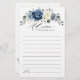 Dusty blue floral Bridal Shower Advice card featuring elegant bouquet of navy blue, royal blue , white , gold, champagne ivory, blush color rose , ranunculus flower buds and sage green eucalyptus leaves and elegant watercolor bouquet. Please contact me for any help in customization or if you need any other product with this design.