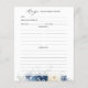 Dusty blue floral bridal shower recipe card featuring elegant bouquet of navy blue, royal blue , white , gold, champagne ivory, blush color rose , ranunculus flower buds and sage green eucalyptus leaves and elegant watercolor bouquet. Please contact me for any help in customization or if you need any other product with this design.