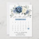 Dusty blue floral wedding calendar save the date card featuring elegant bouquet of navy blue, royal blue , white , gold, champagne ivory, blush color rose , ranunculus flower buds and sage green eucalyptus leaves and elegant watercolor boquet. Please contact me for any help in customization or if you need any other product with this design.