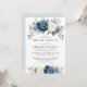 Dusty Blue Navy Champagne Ivory Floral Wedding Invitation