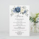 Dusty blue floral wedding menu featuring elegant bouquet of navy blue, royal blue , white , gold, champagne ivory, blush color rose , ranunculus flower buds and sage green eucalyptus leaves and elegant watercolor bouquet. Please contact me for any help in customization or if you need any other product with this design.