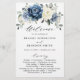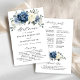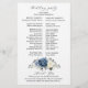 Dusty blue floral wedding program card featuring elegant bouquet of navy blue, royal blue , white , gold, champagne ivory, blush color rose , ranunculus flower buds and sage green eucalyptus leaves and elegant watercolor bouquet. Please contact me for any help in customization or if you need any other product with this design.