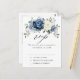 Dusty blue floral wedding RSVP postcard with meal choice featuring elegant bouquet of navy blue, royal blue , white , gold, champagne ivory, blush color rose , ranunculus flower buds and sage green eucalyptus leaves and elegant watercolor boquet. Please contact me for any help in customization or if you need any other product with this design.