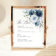 Dusty Blue Navy Floral Wedding Bar Menu Template Pedestal Sign