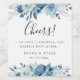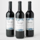 Elegant dusty blue navy floral and foliage bouquet borders, personalized bottle label. Labels feature multiple template text lines for message, names and date.