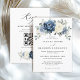 Dusty Blue Navy Ivory Floral Boho Wedding QR Code Invitation
