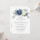 Dusty Blue Navy Ivory Floral Boho Wedding QR Code Invitation