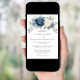 Dusty Blue Navy Ivory Floral Boho Wedding QR Code Invitation