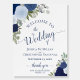 Dusty Blue & Navy Watercolor Roses Wedding Welcome Foam Board