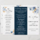 This Tri-fold wedding program features dusty blue, white, gold, rose flowers, and eucalyptus. Personalize with your wedding details and please find matching designs from my "DreamHut" store.