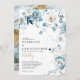 Dusty Blue Navy White Ivory Gold Floral Wedding Invitation