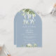 Dusty Blue Oh Boy Botanical Greenery Baby Shower Invitation
