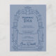 Dusty Blue Ornate Arch Botanical Wedding Details Card | Elegant Wedding Information Enclosure .