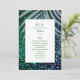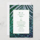 Dusty Blue Palm Leaf Emerald Green Glitter Wedding Invitation