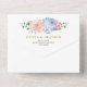 Modern wedding all in one invitation featuring light blue/ dusty blue watercolor hydrangeas with pastel pink , blush, peach , white roses, peonies, sage eucalyptus leaves, branches and foliage. Muted soft and dreamy romantic shades spring summer watercolor floral designs to match with your themed wedding.