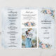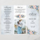 Dusty blue floral botanical wedding program featuring elegant bouquets of navy / Dusty blue, white , blush , peach rose and sage green eucalyptus leaves. Please contact me for any help in customization or if you need any other product with this design.