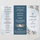 Dusty blue floral botanical wedding program featuring elegant bouquets of navy / Dusty blue, white , blush , peach rose and sage green eucalyptus leaves. Please contact me for any help in customization or if you need any other product with this design.