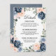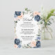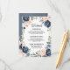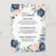 Dusty blue floral geometric wedding details card featuring elegant bouquets of navy / Dusty blue, white , blush , peach rose and sage green eucalyptus leaves and elegant glitter geometric neutral frame. Please contact me for any help in customization or if you need any other product with this design.