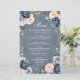 Dusty blue floral geometric wedding menu featuring elegant bouquets of navy / Dusty blue, white , blush , peach rose and sage green eucalyptus leaves and elegant glitter geometric neutral frame. Please contact me for any help in customization or if you need any other product with this design.