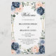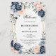 Dusty blue floral geometric wedding program featuring elegant bouquets of navy / Dusty blue, white , blush , peach rose and sage green eucalyptus leaves and elegant glitter geometric neutral frame. Please contact me for any help in customization or if you need any other product with this design.