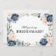 Dusty blue floral geometric bridesmaid proposal card featuring elegant bouquets of navy / Dusty blue, white , blush , peach rose and sage green eucalyptus leaves and elegant glitter geometric neutral frame. Please contact me for any help in customization or if you need any other product with this design.