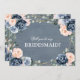 Dusty blue floral geometric bridesmaid proposal card featuring elegant bouquets of navy / Dusty blue, white , blush , peach rose and sage green eucalyptus leaves and elegant glitter geometric neutral frame. Please contact me for any help in customization or if you need any other product with this design.