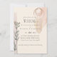 Modern BOHO wedding theme is featured here with colors dusty blue and peach. Graphics of dream catcher and herbs create a lovely aesthetic, warm and inviting for your woodland, outdoors, garden, barn boho-themed wedding.