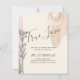 Modern BOHO wedding theme is featured here with colors dusty blue and peach. Graphics of dream catcher and herbs create a lovely aesthetic, warm and inviting for your woodland, outdoors, garden, barn boho-themed wedding.