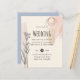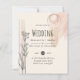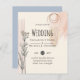 Modern BOHO wedding theme is featured here with colors dusty blue and peach. Graphics of dream catcher and herbs create a lovely aesthetic, warm and inviting for your woodland, outdoors, garden, barn boho-themed wedding.