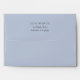 Elegant dusty blue envelope with a watercolor illustration of a blush and peach floral bouquet on the inside.