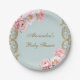 Dusty Blue Peony Rococo Pink Floral Baby Shower Paper Plates
