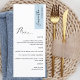 Why spend in place cards and menu cards when you can have an elegant All-in-one elegant Menu personalized with each guest name! Contemporary, simple and elegant design with beautiful modern hand written calligraphy. Stripe on the top right corner in dusty blue tone with guest name in black. Back in same dusty blue as stripe. Ability to change both stripe color or back by selecting "customize further". NOTE: please an individual order for each menu by adding guest name into menu, add menu into shopping cart; then come back to menu, add second guest name, add menu to shopping cart...continue with this process with all guest names on your list. For short first guest names, add with your keyboard spacebar a few empty "spaces" before the name, to center it better. Design available in a variety of color choices. Part of our "Dusty Rose and Dusty Blue Event Signs and Products" collection with a variety of coordinating products available.