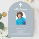 Dusty blue photo arch boy First Holy Communion Invitation