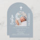 You can download your digital purchase an unlimited amount of times whether it's to print more of the same design, to make edits to the design, or to apply the digital design of your Dusty Blue Photo Arch Script Baptism Invitation to other products such as party supplies on Zazzle.