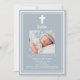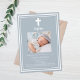 Plain white envelopes are included with paper invitations and will come to fit the invitation size you select. If you don’t need the envelopes, you may choose to not receive them by selecting the dropdown below "Envelopes" and choosing "None." If you’d like to have a design on your envelopes, you can browse all of these available envelopes to find the design that complements your Dusty Blue Photo Baptism Invitation.