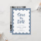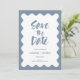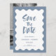 Modern Elegance: Dusty Blue Photo Script Save The Date Invitations with Wavy Frame Design. Immerse your loved ones in the joy of upcoming nuptials with our Modern Elegant save-the-date invitations. These beautifully crafted templates feature an understated dusty blue and white color palette, infusing sophistication into every detail. A captivating script font adorns the front, announcing the event details, encapsulated by a delicate wavy frame. For an added touch of personalization, the back of the invitation has a template for a black and white photo of the couple. Whether you like to buy prints or prefer time-saving digital downloads, the choice is yours. Our invitations are simple to customize, ensuring each detail perfectly aligns with your wedding theme. Embrace modern elegance and give your guests a taste of the beautiful celebration to come with these uniquely designed wedding save the date invitations.