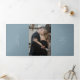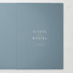 Modern simple minimal elegant typography trendy dusty blue all in one trifold budget wedding invitation template with 2 photos, rsvp and details with scanning QR codes featuring a chic trendy calligraphy script and transparent photo overlay. ++++++++++++ Easy to personalize with one or two custom photos (you can upload the same photo on both sides) and your guest information! The invitation is suitable for classic formal spring summer fall elegance or winter stylish weddings.
