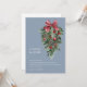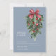 Dusty Blue Pine Bough Red Bow Wedding Invitation