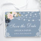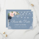 Watercolor Dusty Blue and Pink Blush Floral, String Lights, Lace Save the Date Card