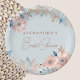 Personalize these Boho Floral Bridal Shower paper plates, perfect for celebrating the excited bride-to-be. These elegant and rustic plates feature a stunning arrangement of dusty pink, beige, and blue flowers and leaves, artfully designed against a dusty blue background. Embracing a feminine and bohemian aesthetic, these plates are ideal for a boho chic bridal shower party, lunch or picnic. Elevate your special day with these beautifully crafted paper plates, blending elegance and rustic charm seamlessly.