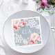 Dusty blue pink roses florals monogram wedding napkins