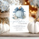 Dusty Blue Pumpkin Boy Greenery Bow Baby Shower Invitation