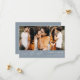The matter paper is our sample of choice -- it's a reasonably priced, good quality, nice feeling paper stock. We were a little concerned the muted rustic blues might not reproduce all that well (usually by light colored samples), but they're just gorgeous! The white lettering is perfect in combination with the blue background, and the typography is all easy to read.