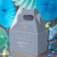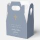 Personalized Dusty Blue Religious Cross Boy First Communion Favor Box. Part of the Dusty Blue Cross Boy First Communion Invitation Suite with matching invitation, stationery and party accessories available.