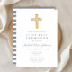 Dusty Blue Religious Cross Boy First Communion Invitation