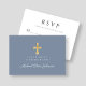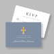 Dusty Blue Religious Cross Boy First Communion RSVP Card