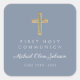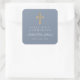 Dusty Blue Religious Cross Boy First Communion Square Sticker