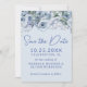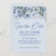 Dusty blue romantic floral on light blue floral Save the Date card. Customize names, dates, and information.