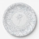 Elegant classical dusty blue white floral roses pattern bride and groom monogram French inspired wedding paper plates.