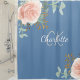 Dusty blue rose gold floral greenery monogram name shower curtain